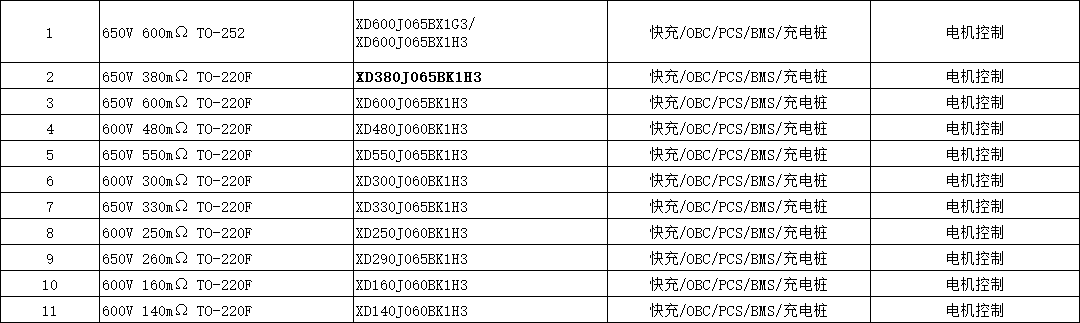 XD380J065BK1H3 芯達茂,SJ Mos管 650V 380mΩ TO-220F 快充/OBC/PCS/BMS/充電樁