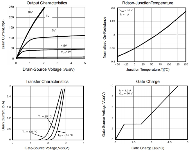 低導通電阻:最大導通電阻(RDS(on))為190mΩ,在5V柵源電壓(VGS)和1A漏極電流(ID)條件下,典型值為170mΩ。低導通電阻有助于減少功率損耗,提高電源的效率.