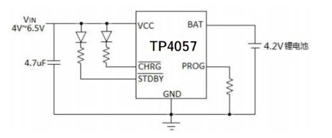 便攜式電源設(shè)備:如移動(dòng)電源、充電寶等,需要在有限的空間內(nèi)實(shí)現(xiàn)高效的充電功能,同時(shí)對(duì)芯片的散熱性能和穩(wěn)定性有較高要求。TP4057的寬輸入電壓范圍和良好的散熱特性使其成為理想的選擇。TP4057典型應(yīng)用圖如下所示~