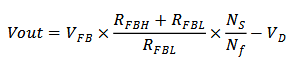 其中,Nf是變壓器輔助繞組匝數(shù),RFBH是FB外接的上偏電阻,RFBL是FB內(nèi)置的固定下偏電阻,VFB一般按照1.0V計(jì)算,VD為輸出續(xù)流管壓降。