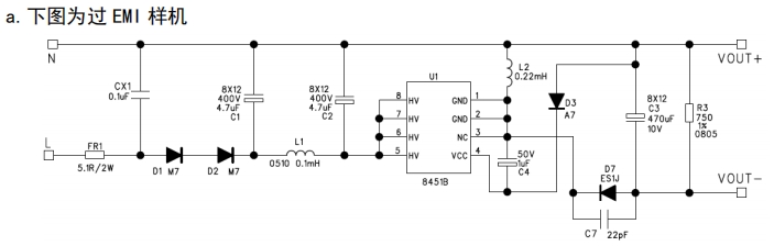 在效率方面,F(xiàn)T8451B表現(xiàn)出色。在115Vac和230Vac的滿(mǎn)載條件下,其效率分別可達(dá)62%和60%,這一效率水平在同類(lèi)產(chǎn)品中處于領(lǐng)先地位。高效率不僅意味著能源的充分利用,還能有效降低能源損耗,符合現(xiàn)代節(jié)能理念。此外,F(xiàn)T8451B的EMI(電磁干擾)性能也得到了充分考慮,其傳導(dǎo)和輻射EMI均能達(dá)到相關(guān)標(biāo)準(zhǔn),如EN55022B和EN55013,確保電源在運(yùn)行過(guò)程中不會(huì)對(duì)周邊設(shè)備產(chǎn)生電磁干擾,也不會(huì)受到外界電磁干擾的影響,保障了整個(gè)系統(tǒng)的穩(wěn)定運(yùn)行。