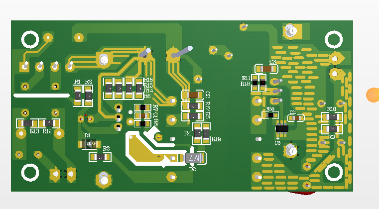散熱設(shè)計(jì):考慮到功率管和其他熱敏元件的散熱需求,PCB板設(shè)計(jì)中包含了散熱孔和散熱焊盤,以提高散熱效率。