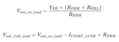 其中,RFBH和RFBL分別為FB外接的上偏電阻和下偏電阻,ICOMP_LINE為滿載時(shí)經(jīng)過(guò)FB上偏電阻的輸出線補(bǔ)償電流。