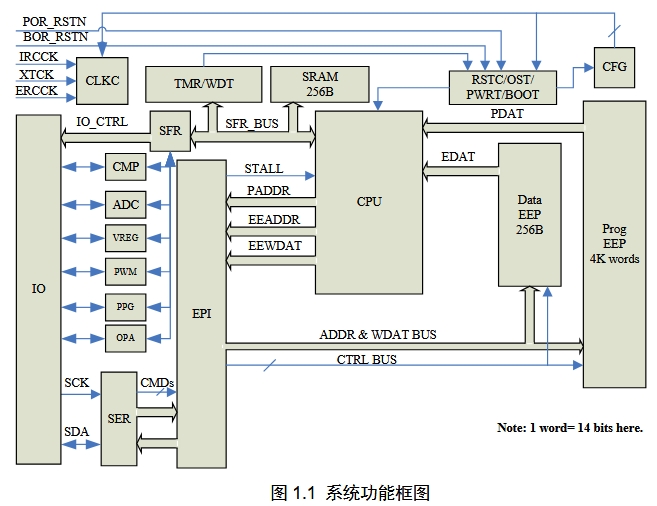 ? 2K×14 Flash、128×8 RAM、256×8 EEPROM——足以容納本機的狀態機、濾波算法及一條 BLE 廣播透傳協議棧(僅 1.2 kB)。