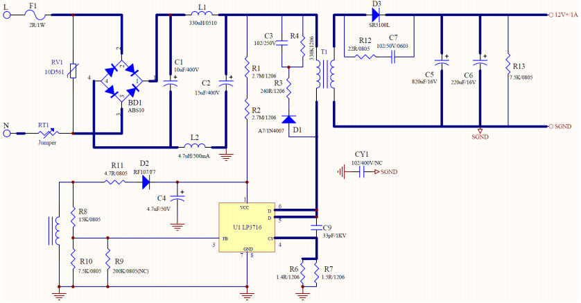 LP3716用自供電PSR架構,把高壓啟動、環路補償、保護邏輯全部集成,外圍僅5顆器件,單層板過EMI,83%效率,75mW待機。下次再畫“小家電輔助電源”、“路由器12V適配器”、“智能插座內置電源”,直接抄這份參考設計——一顆LP3716,讓反激電源設計回歸“極簡主義”。