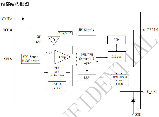 | 特色 | 650 V 功率管 + 續流二極管 + 采樣電阻 全內置 |