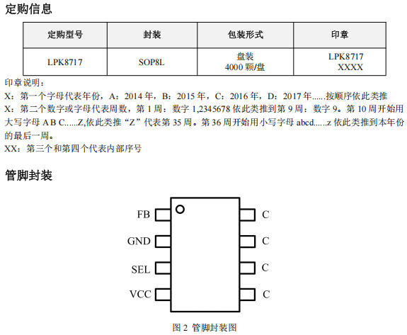 LPK8717采用SOP-8封裝,5個有效引腳: