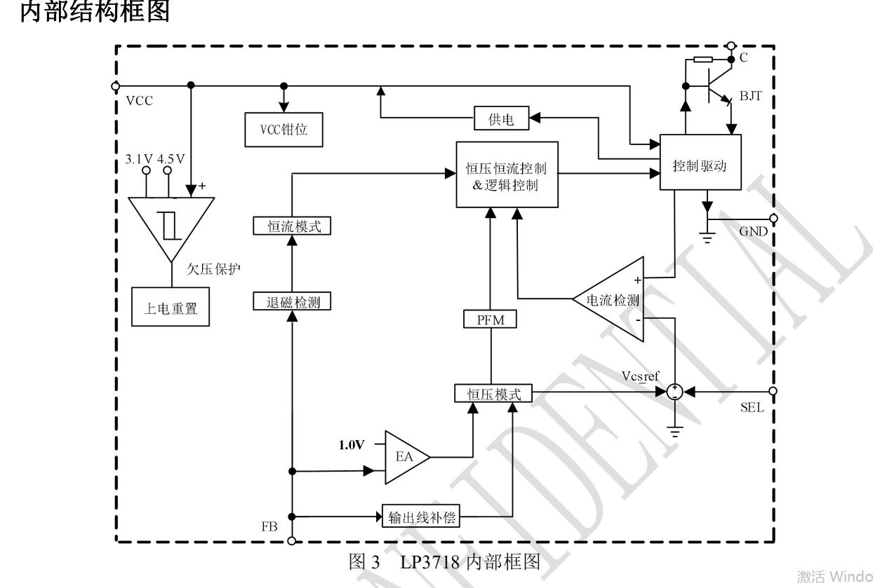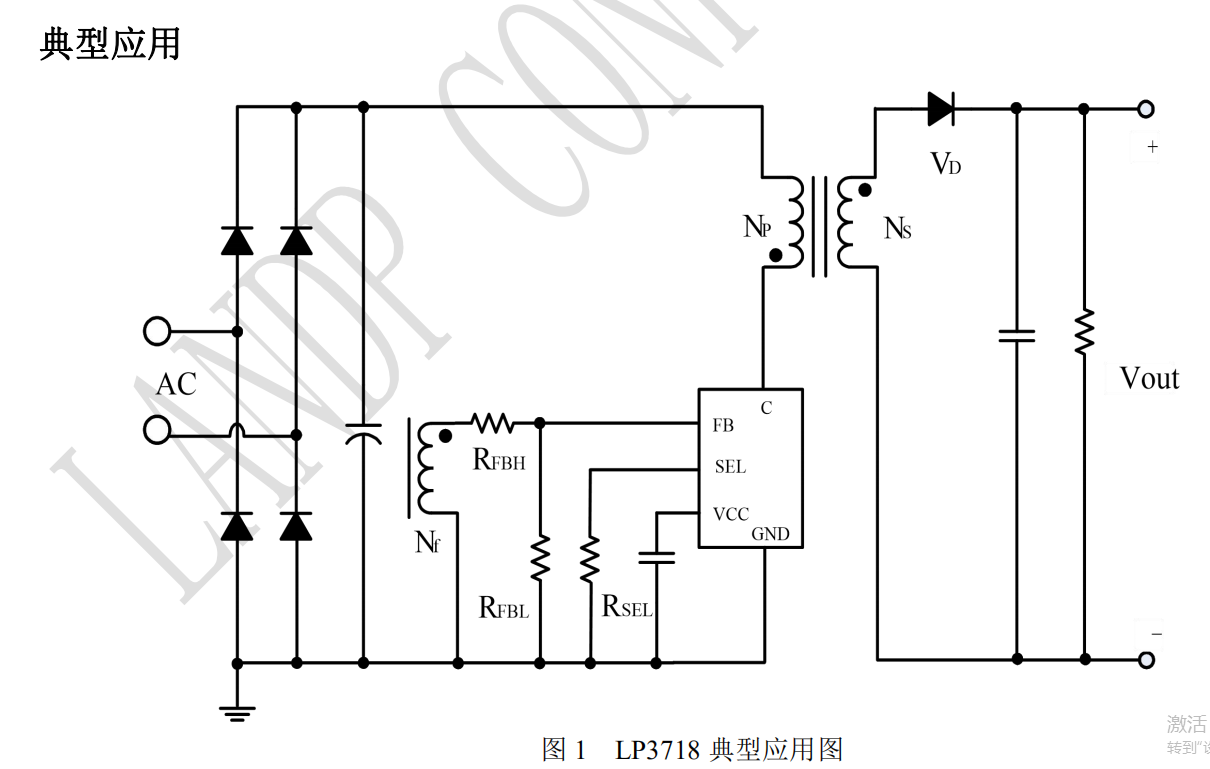 為了實現系統成本的致簡化,LP3718 內置啟動電路,外圍不需要啟動電阻;采用自供電的方式 來取消輔助繞組 VCC 供電二極管。 為了實現更好的輸出電壓調整率,LP3718 內置 輸出線纜補償功能,可以通過設定 FB 外置上偏電 阻的值來調節輸出線纜補償值。