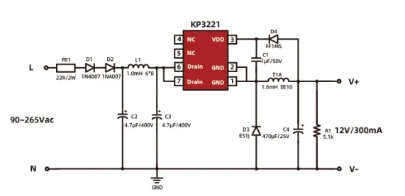 3. KP3221 -- 4W BUCK非隔離方案 12V/300mA